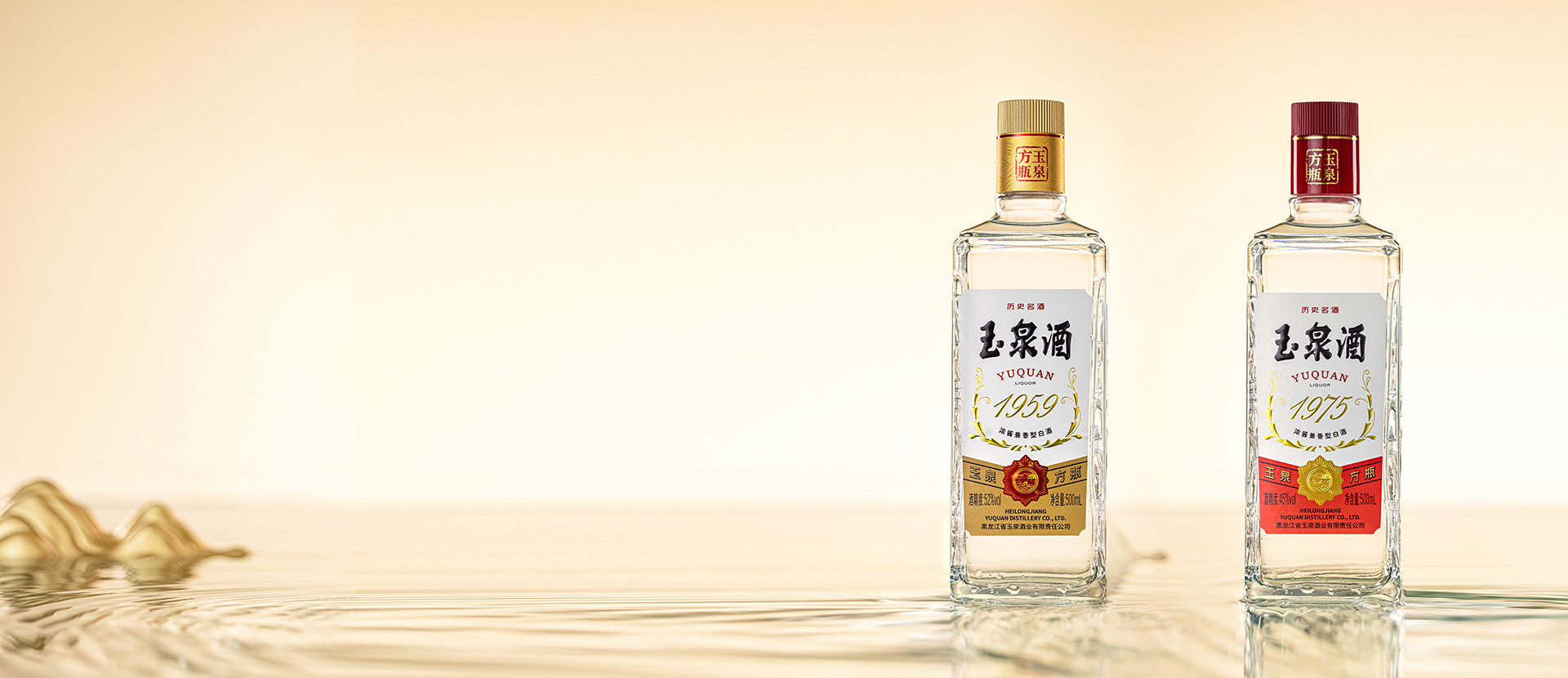 1959年由國家商業部投資、黑龍江省政府組織下,“黑龍江省玉泉酒廠”正式成立。1975年全國白酒泰斗周恒剛領導的全國白酒技術精英專家小組,首創兼香型玉泉方瓶,成為當時中國第五大白酒香型。